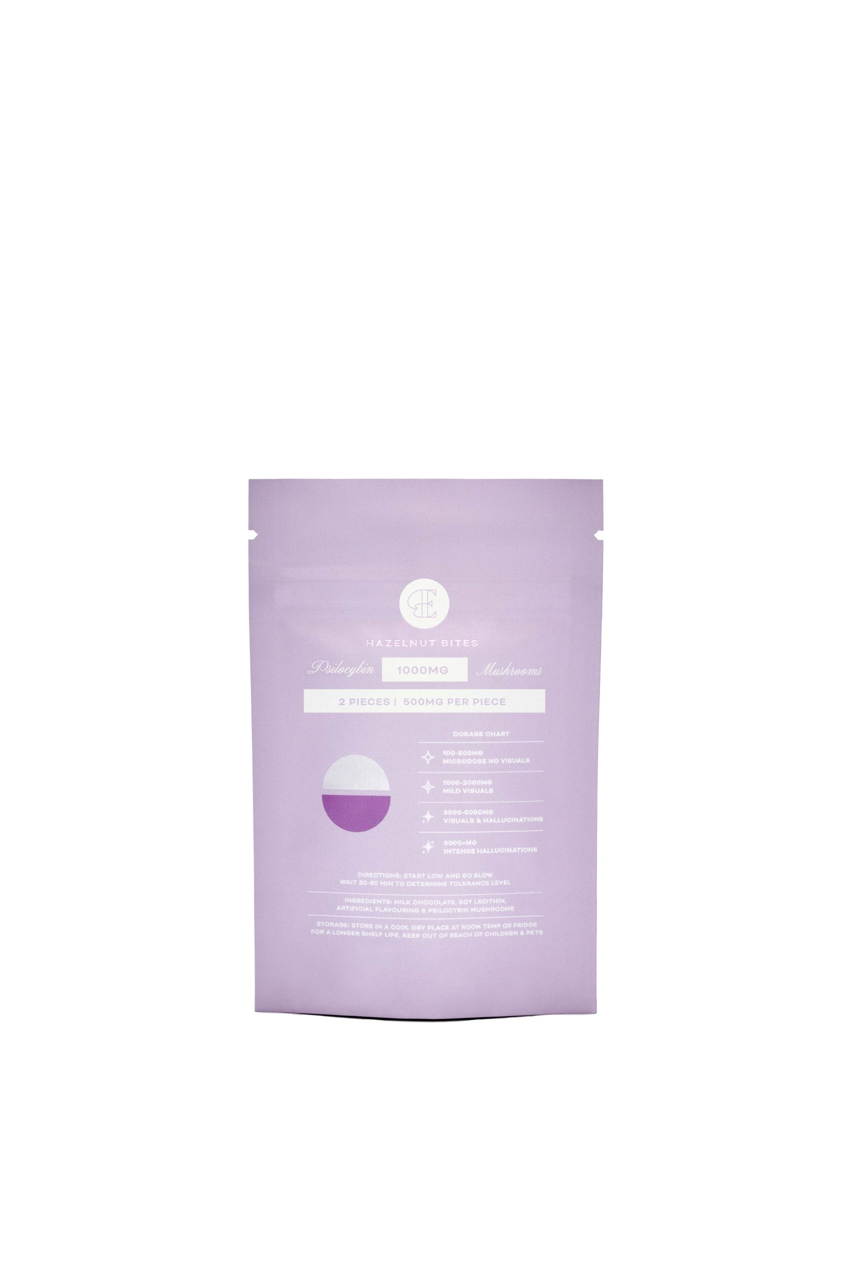 High-quality milk chocolate, soy lecithin, artificial flavouring & psilocybin mushrooms.
